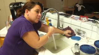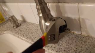 If cleaning did not resolve the issue, or if you found the air gap body to be cracked or broken, you will need to replace it. Start by going under the sink and disconnecting both the smaller hose coming from the dishwasher and the larger hose going to the garbage disposal. Use pliers for the clamps and have your bucket ready. Next, unscrew the large plastic mounting nut that holds the air gap body to the underside of the sink. Once the nut is removed, you can pull the entire air gap assembly up and out from the top of the sink.