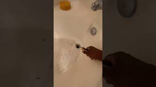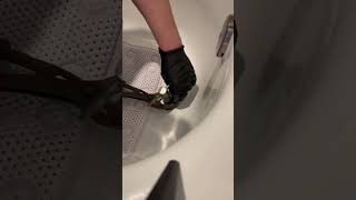 After successfully removing the old flange, it is crucial to prepare the surface for the new installation. Use a plastic putty knife to scrape away the bulk of the old, hardened plumber's putty from the bathtub surface around the drain opening. Use a wire brush to thoroughly clean the female threads inside the drain pipe (the drain shoe), removing any bits of old putty, sealant, or corrosion. Be meticulous with this step to ensure the new flange will seal properly. Finally, wipe the entire area—both the tub surface and the pipe threads—with a clean rag. For a perfectly clean surface, you can wipe it down with a rag dampened with mineral spirits or rubbing alcohol to remove any final oily residue.