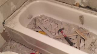 To completely free the tub, the wall material covering the tub's nailing flange must be removed. This typically means removing tile and backer board for about 6-8 inches above the tub deck around all three sides of the alcove. Use a hammer and chisel or a small pry bar to carefully chip away the tiles. Once the tile is gone, cut through the drywall or cement backer board with a utility knife or reciprocating saw to expose the wall studs and the tub's nailing flange, which is a lip that extends up onto the studs.