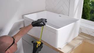 It is much easier to install the faucet and drain before setting the sink. Place the new sink upside down on a soft, protected surface like a towel or piece of cardboard. First, install the faucet. If your faucet came with a gasket, place it over the holes on the sink deck. Insert the faucet's tailpieces and mounting studs through the holes. From the underside, slide on any supplied washers and thread on the mounting nuts. Tighten these nuts by hand, then use a basin wrench to snug them up, ensuring the faucet is straight. Next, install the drain. Roll a rope of plumber's putty about 1/4-inch thick and place it under the lip of the drain flange. Insert the drain flange into the drain hole from the top of the sink. From the underside, slide the rubber gasket over the drain threads, followed by the friction washer and the mounting nut. Tighten the mounting nut securely with channel-lock pliers until the putty squeezes out from under the flange. Clean up the excess putty. Finally, attach the pop-up drain lift rod mechanism according to the faucet manufacturer's instructions.