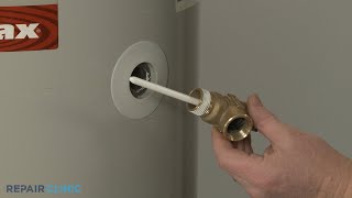 The T&P valve has a discharge pipe that directs released water safely toward the floor. This pipe must be removed before you can access the valve itself. Using a large pipe wrench or adjustable wrench, grip the fitting where the copper discharge pipe connects to the T&P valve's outlet. Turn the fitting counter-clockwise to unscrew it. Have a rag or small bucket ready to catch any residual water trapped in the pipe.